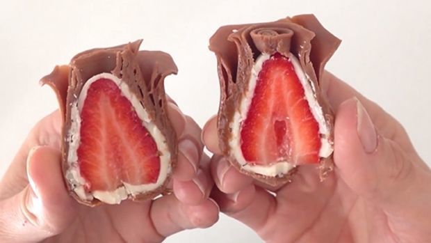 Schneiden Sie Ihre Erdbeeren in Rosenform. Eine einfache aber tolle Dekoration!