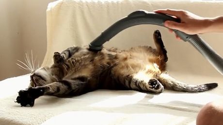 Diese Katze liebt es, wenn sein Frauchen es mit dem Staubsauger massiert