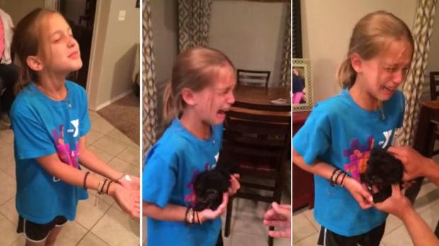 Dieses kleine Mädchen erfährt gleich, dass es einen Welpen geschenkt bekommt. Schauen Sie sich ihre Reaktion an.
