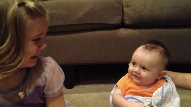 Dieses kleine Mädchen sieht zum ersten Mal seinen Bruder. Seine Reaktion ist sehr rührend.