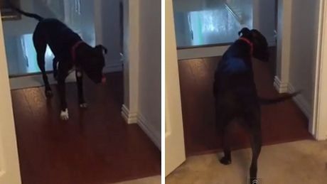 Dieser Hund hat Angst durch Türen durch zu gehen. Aber er hat die ideale Lösung gefunden.