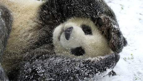 Dieser kleine Eisbär macht seine ersten Schritte im Schnee