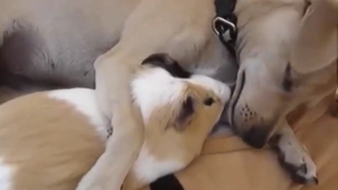 Dieser Hund und diese Katze sind die besten Freunde der Welt. Hat die Katze ein Problem, ist der Hund zur Stelle!