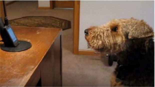 Dieser kleine Hund kann mit seinem Herrchen reden.