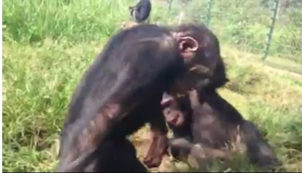 Dieser Schimpanse sieht nachdem er auf einer einsamen Insel ausgesetzt wurde zum ersten Mal nach 30 Jahren einen Menschen