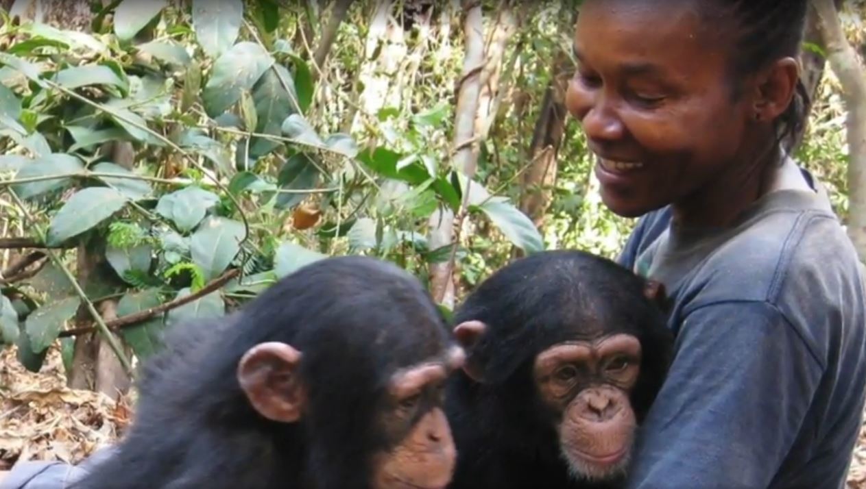Ein Schimpanse reagiert auf die schlechte Nachricht einer Frau auf bewegende Weise.