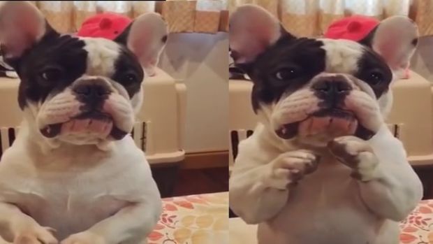 Dieser kleine Hund kann mit seinem Herrchen reden.