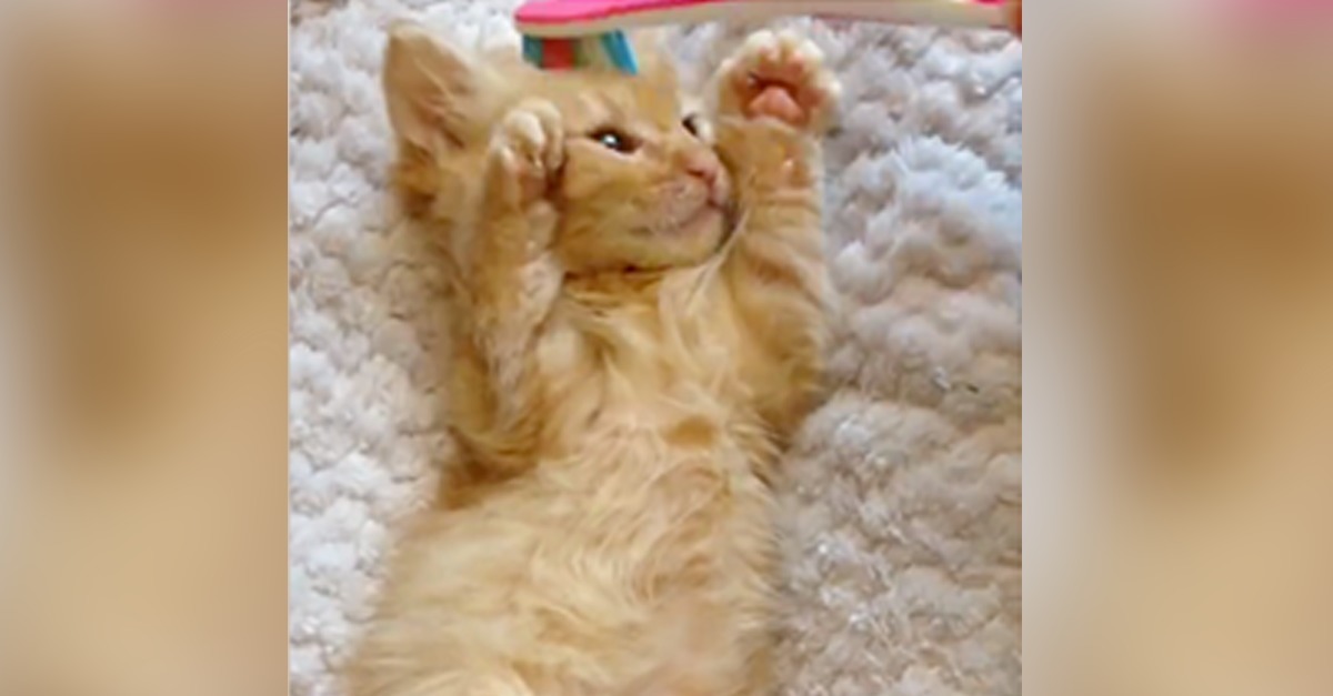 Dieses Kätzchen spielt mit einer Feder: einfach zu allerliebst!