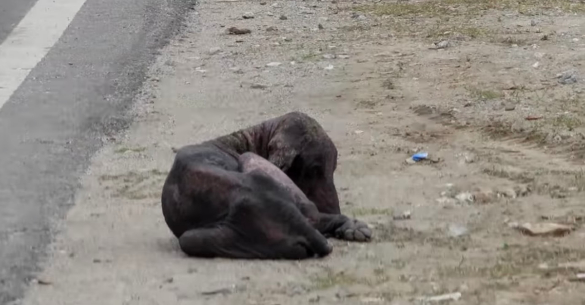 Ein Tierschutzverein rettet einen streunenden, halbtoten Hund von der Straße.