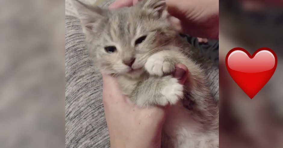 Mit ein bisschen Zärtlichkeit entdeckt dieses verängstigte Kätzchen zum ersten Mal die Liebe