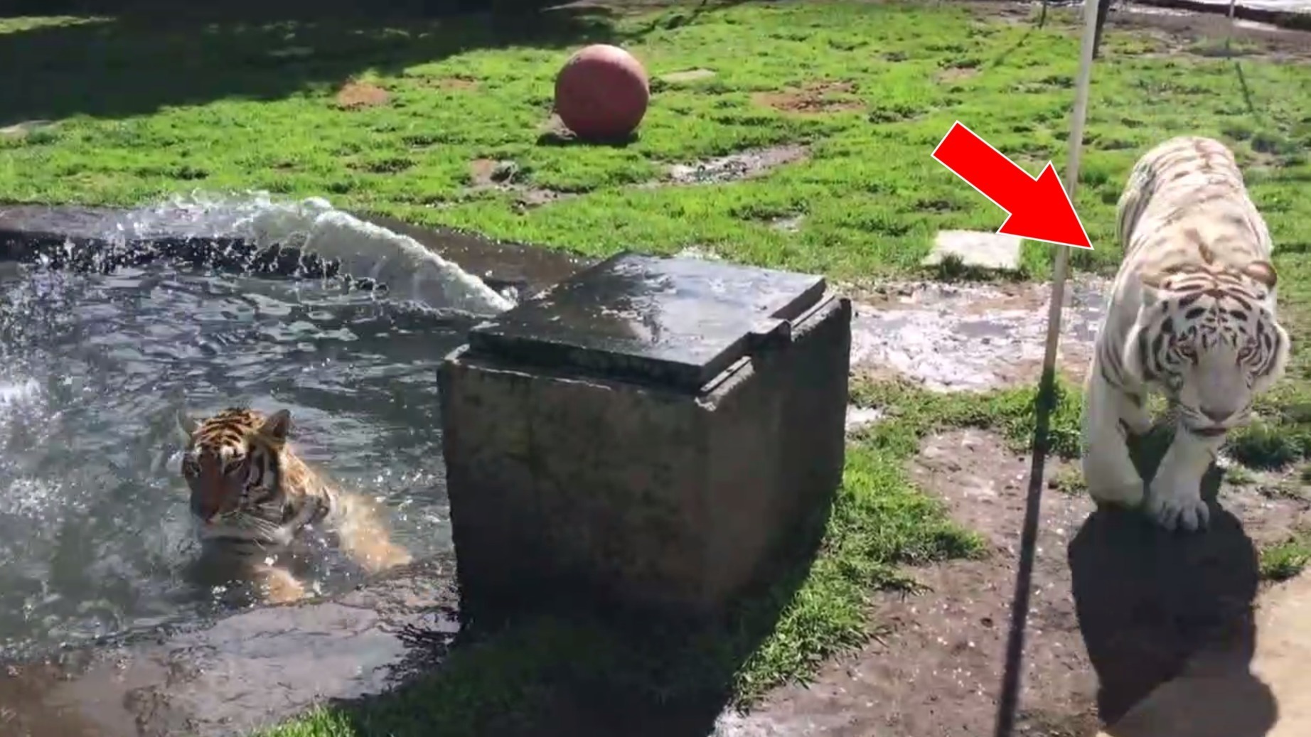Black Jaguar White Tiger Foundation: Ein Tiger-Pärchen planscht zusammen im Pool