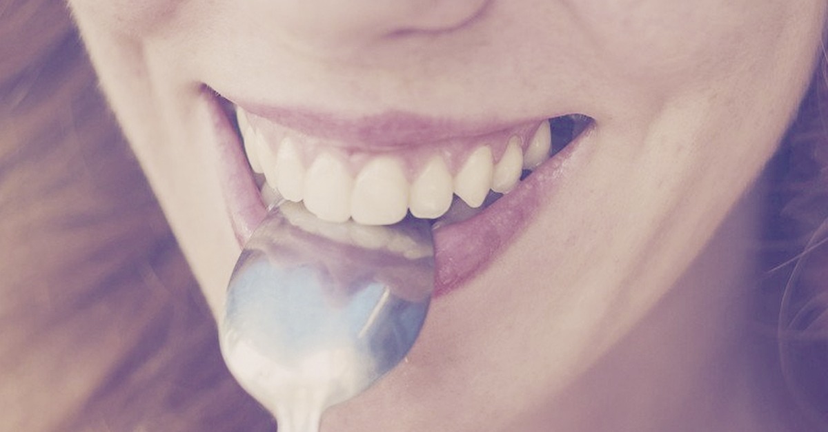 Sie putzt sich die Zähne einer bestimmten Frucht und sie werden wieder strahlend weiß!