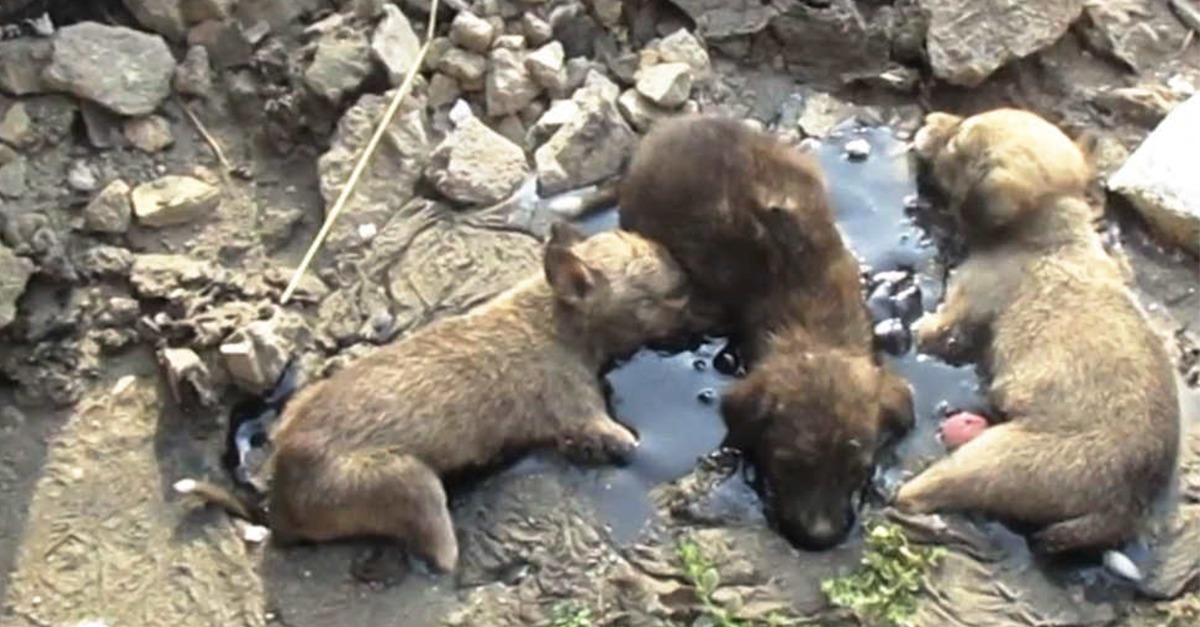 Grausige Entdeckung in Rumänien: Vier Welpen mit Teer an der Straße festgeklebt