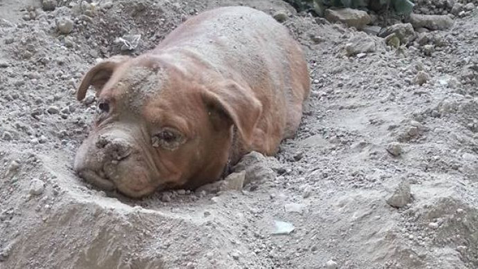 Spaziergänger findet Hündin. Erst beim Ausgraben entdeckt er die traurige Wahrheit!