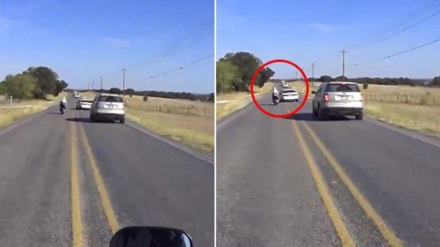 Dieser Motorradfahrer wird das Rennen gegen dieses Auto bereuen