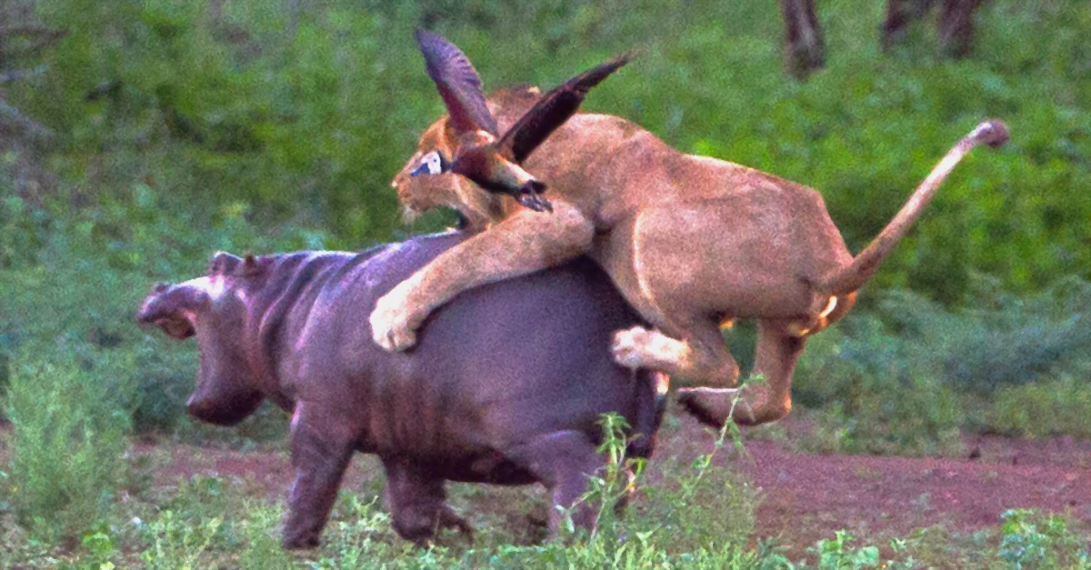 Die Löwin greift ein Nilpferd an und bereut es sofort