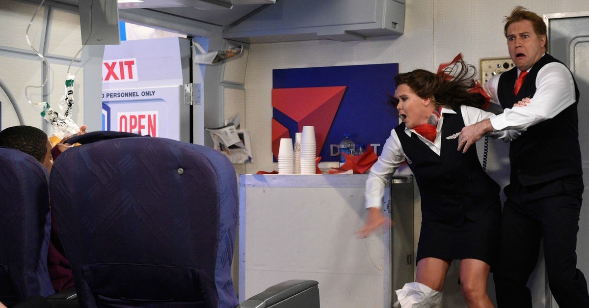 Passagier öffnet Flugzeugtür während Flugs