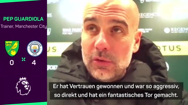 Manchester City konnte sich mit 4:0 gegen Norwich durchsetzen. Trainer Pep Guardiola war nach dem Spiel vor allem von Raheem Sterling und dessen Hattrick beeindruckt.