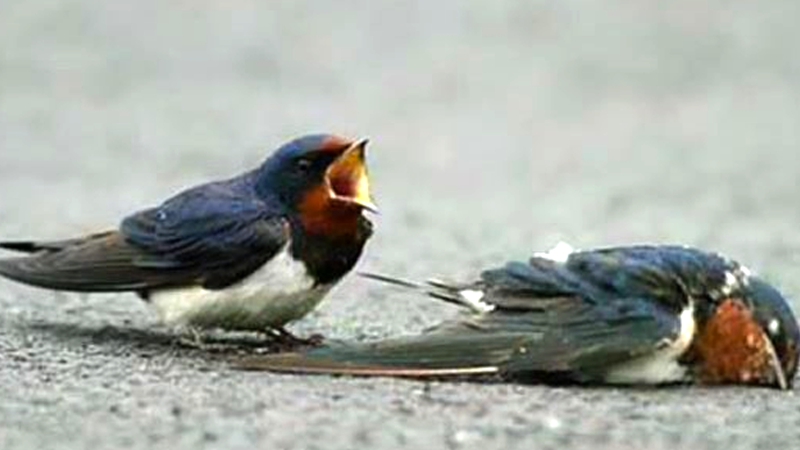 Schwalbe liegt verletzt auf der Straße: Die Reaktion ihres Männchen ist herzzerreißend
