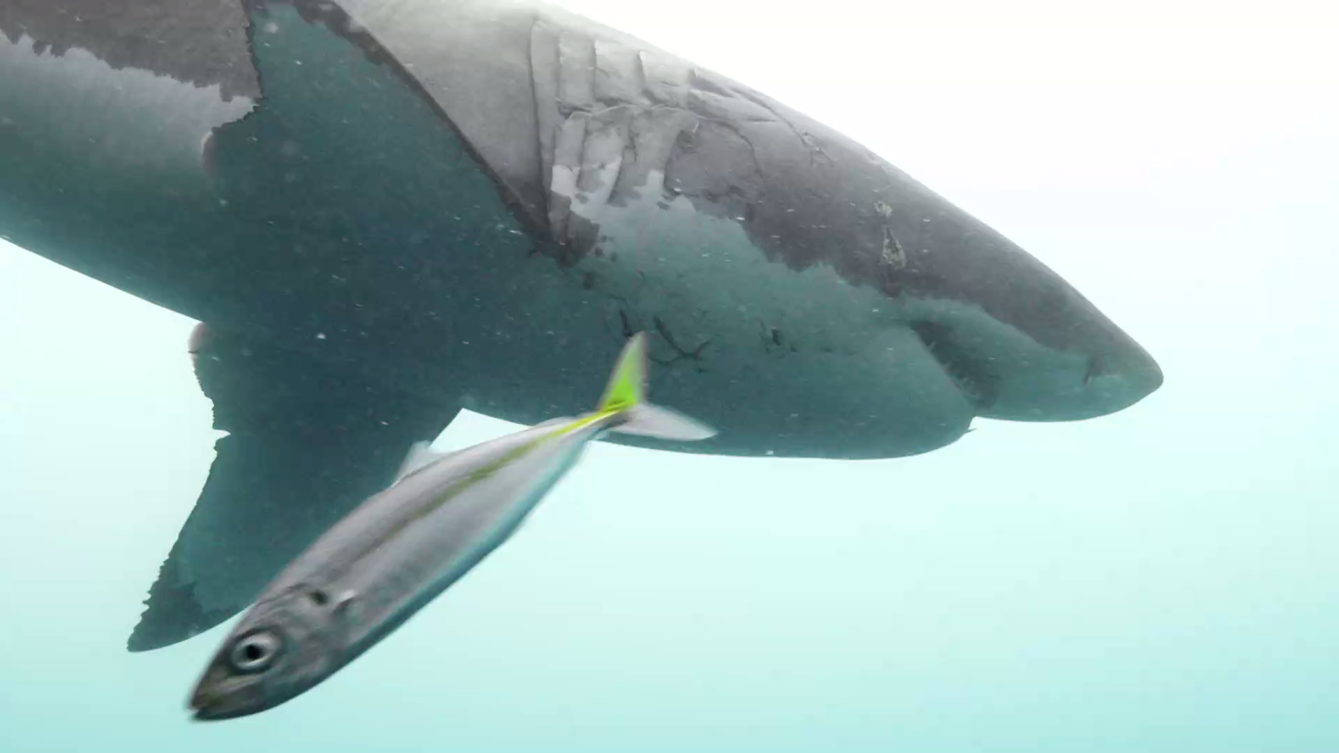 Mann filmt, wie er mit bloßen Händen mit einem Hai ringt
