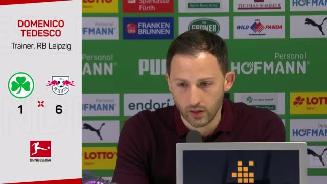 RB Leipzig konnte im Auswärtsspiel gegen Greuther Fürth einen wichtigen 6:1-Kantersieg einfahren. Nach dem Spiel bremst Trainer Domenico Tedesco trotzdem jegliche Euphorie.