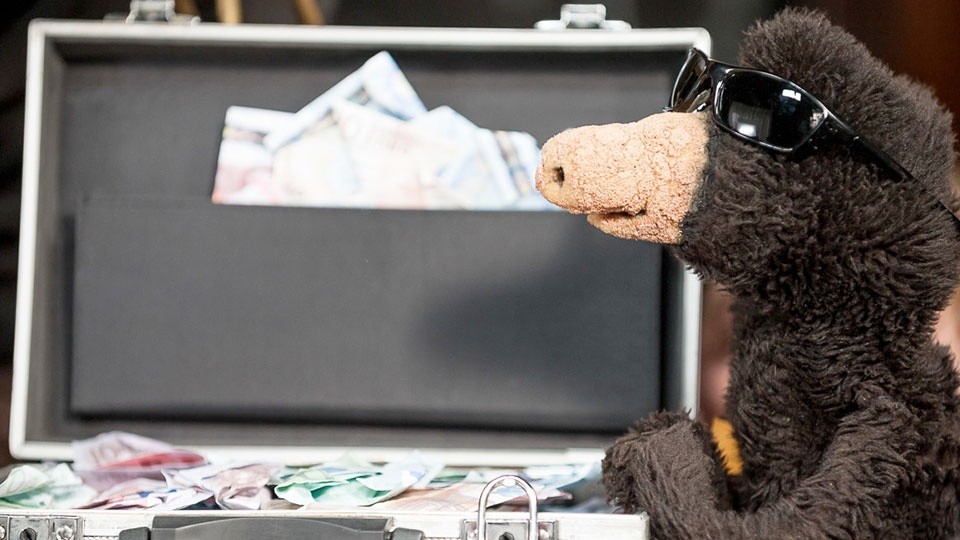 Für Geld her oder Autsch'n! verlassen Maulwurf, Frosch Falkenhorst und Eisbär Kalle die Bühne, aber auch nicht weit. Denn in ihrem ersten Kinofilm geht es auch um das Leben auf der Bühne und dessen Schattenseiten. Bei den Dreien mag es nicht mehr richtig harmonieren. Deswegen müssen Richy (Holger Kraft) und Spec (Christoph Maria Herbst) helfen. Der Komiker und Puppenspieler René Marik hat für seine Mischung aus Puppen- und Realfilm nicht nur das Drehbuch geschrieben, sondern auch auf dem Regiestuhl Platz genommen.