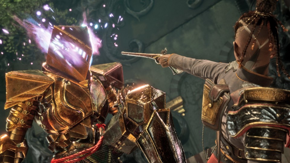 Ein Rollenspiel mit rasanten Kämpfen und Open World: Der Gameplay-Trailer zum Action-RPG Flintlock: The Siege of Dawn macht neugierig auf mehr. <br /> <br /> Denn Entwickler A44 Games kombiniert anspruchsvolle Gefechte wie in der From-Software-Vorlage mit flüssigen Animationen wie in Batman: Arkham City. Dazu kommt eine frei begehbare Open World , in der ihr dank eures teleportierenden Tierbegleiters über Teile der Landschaft hinwegfliegen könnt. <br /> <br /> Flintlock: The Siege of Dawn erscheint im 1. Quartal 2023 für PC, PlayStation 5 und Xbox Series X/S. Aber auch Besitzer*innen der alten Konsolen PS4 und Xbox One dürfen mit einer Version rechnen.