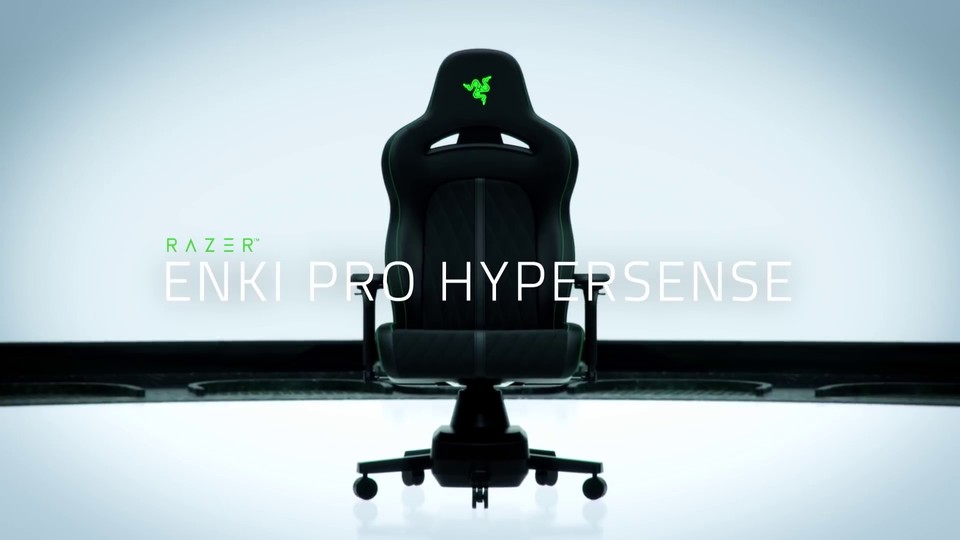 Der zur CES 2022 vorgestellte Enki Pro HyperSense von Razer ist ein Gaming-Stuhl, der euch haptisches Feedback bietet. So kann er sich zum Beispiel selbsttätig nach vorne, hinten oder zu den Seiten bis zu 1,5 Zoll neigen oder leichte Stöße in eure Seiten oder die Schultern liefern. Der Motor, der die Bewegungen steuert, befindet sich dabei unten an den Rädern, wodurch der Stuhl eine stabile Basis haben soll. <br /> <br /> Dabei kann der futuristische Gaming-Stuhl auf Videospiele, Filme oder Inputs von Tastatur, Maus und Kontroller reagieren. Dadurch soll das Spiele- oder Filmerlebnis noch immersiver werden. Die Sitzfläche ist 22 Zoll breit und die Schulterbögen extra weit, damit sich euer Gewicht gleichmäßig verteilt. Und die RGB-Beleuchtung im Logo darf natürlich auch nicht fehlen. <br /> <br /> Weitere Highlights von der CES 2022 findet ihr in unserem großen Übersichtsartikel .