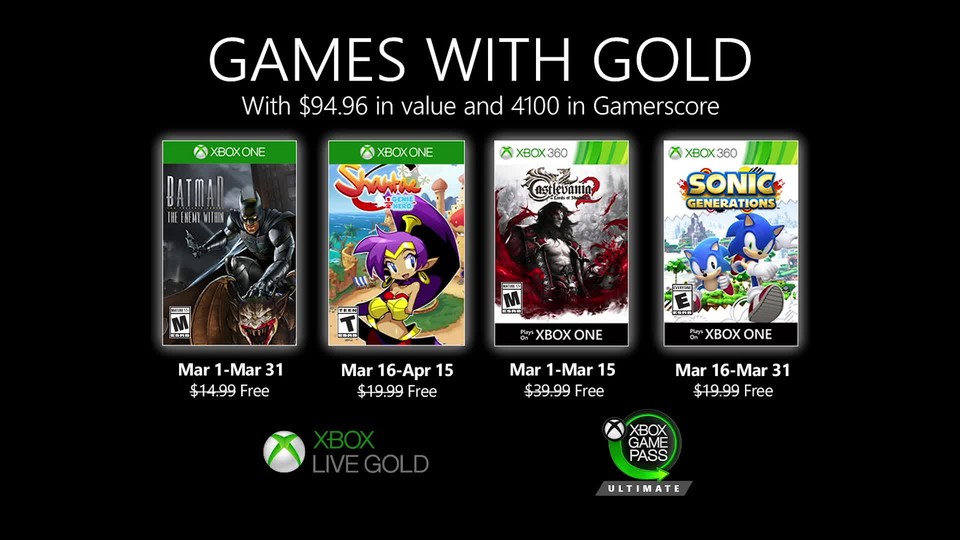 Auch im März gibt es für Xbox Live Gold-Abonnenten eine bunte Mischung aus Horror-Action, Telltale-Abenteuer, lustigem Jump 'n' Run sowie einem blauen Igel, auf die ihr euch freuen könnt. <br /> <br /> Welche Gratis-Spiele sich dahinter verbergen, zeigt euch der Trailer.