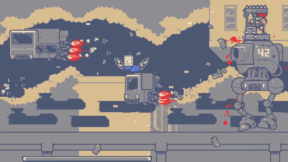 Das Video zeigt Spielszenen aus dem Metroidvania-Plattformer Kunai, speziell aus den Kämpfen gegen Endbosse. Darin steuern Spieler den kleinen Tablet-Roboter Tabby, der sich dem Kampf gegen eine bösartige Künstliche Intelligenz anschließt. Da Tabby durch die Seele eines uralten Kriegers erfüllt ist, verfügt er über Ninja-Fertigkeiten um die Parkour-Levels und Gefechte zu meistern. Kunai setzt auf einen minimalistischen Pixel-Grafikstil.