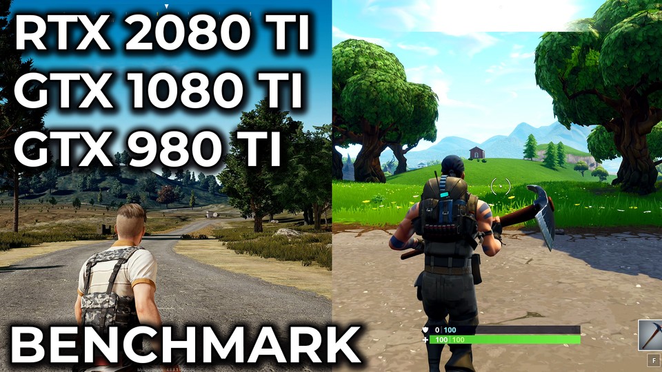 Wir vergleichen die Leistung der brandneuen Nvidia Geforce RTX 2080 Ti Founder's Edition mit den Vorgängern GTX 1080 Ti und GTX 980 Ti in den Spielen PUBG und Fortnite . <br /> <br /> Dieses Video gibt es in 4K UHD bei Candyland auf YouTube . <br /> <br /> Für diesen Benchmark haben wir von allen drei Karten die Founder's Edition genutzt. Während diese bei GTX 980 Ti und GTX 1080 Ti noch Referenzwerte hatten, ist die RTX 2080 Ti ab Werk erstmals in der Geschichte einer Referenzkarte übertaktet . <br /> <br /> Alle Spiele liefen im Test mit 2160p nativer Auflösung und maximalen Grafikdetails. PUBG lief dabei in Version 4.8.7.16, außerdem zeigen wir alle Maps (Erangel, Miramar und Sanhok). Fortnite lief mit Patch 6.01. <br /> <br /> Hier geht es zu Candyland auf YouTube , Facebook und Twitter . <br /> <br /> Unser Testsystem: <br /> <br /> Intel Core i7 6700K <br />16 GB DDR4 RAM 2133 MHz <br />Nvidia GeForce GTX 1080 Ti <br />250 GB Samsung 850 Evo SSD <br />2 TB Seagate Desktop <br />Windows 10 1803