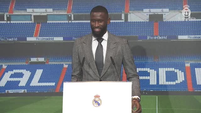 Antonio Rüdiger spielt künftig für den erfolgreichsten Verein Europas. Bei seiner Antrittsrede bei Real Madrid bedankt sich der 29-Jährige beim Präsidenten für die Chance, ein Teil des Klubs zu sein.
