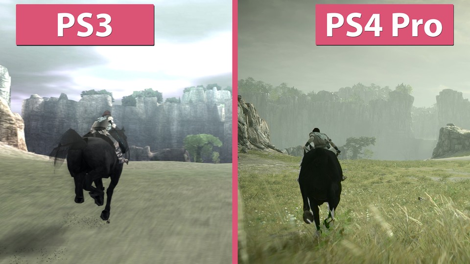 Der Klassiker Shadow of the Colossus ist nun für PS4 und PS4 Pro als Remake erschienen. Ursprünglich erschien der Titel für die PS2 und wurde dann für die PS3 als HD-Remaster veröffentlicht. Im Video vergleichen wir die Grafik des Remakes auf der PS4 Pro mit dem PS3 HD-Remaster. <br /> <br /> Das Video gibt es in 4K UHD bei Candyland auf YouTube . <br /> <br /> Shadow of the Colossus bietet auf der PS4 Pro zwei verschiedene Modi – vorbildlich. Im Cinematic Modus gibt es eine höhere Auflösung von 2560x1440p bei stabilen 30 fps. Der Perfomance Modus bietet eine Bildrate von 60 Bildern pro Sekunde, das Bild wird dann mit 1080p Auflösung nativ ausgegeben. <br /> <br /> Shadow of the Colossus im Test: Ein Meisterwerk im zweiten Frühling <br /> <br /> Bei der Performance erlaubt sich Shadow of the Colossus keine Schnitzer. In beiden Modi bleibt die Bildrate stabil bei 30 bzw. 60 fps. Die optische Überarbeitung beeindruckt, vor allem wenn man den Titel schon früher gespielt hat. Texturen sind scharf, Gräser bedecken die Ebenen, auch aus der Ferne sind Details sichbar und das Fell der Kolosse schwingt bei jeder Bewegung mit. Grund genug, den Klassiker erneut anzupacken oder sich jetzt erst recht zu Gemüte zu führen. <br /> <br /> Hier geht es zu Candyland auf YouTube , Facebook und Twitter