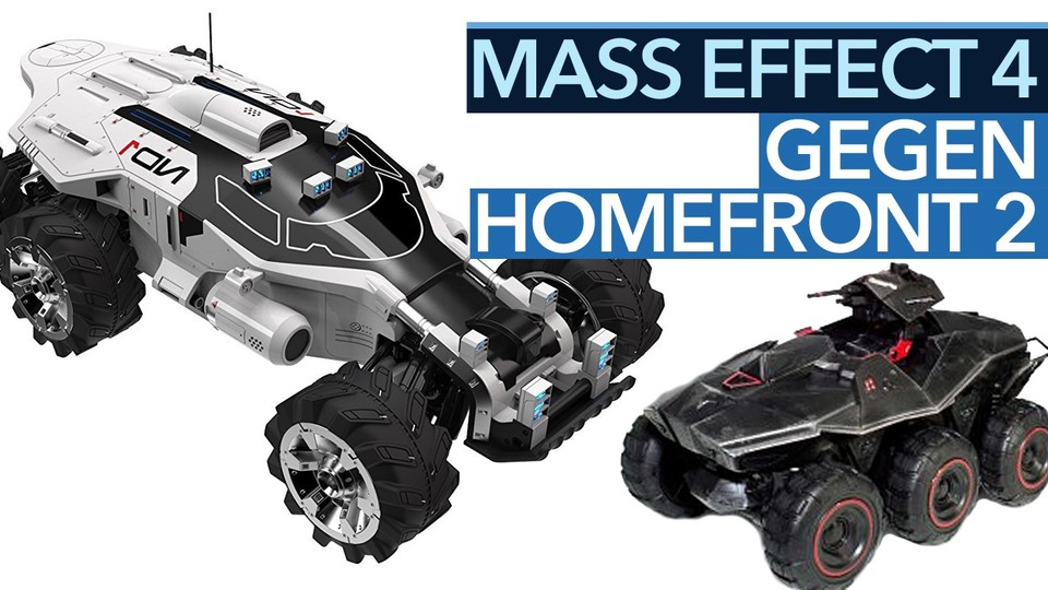 Wie lassen den 200 US-Dollar teuren Nomad aus Mass Effect: Andromeda gegen den funkferngesteuerten Goliath aus Homefront: The Revolution antreten. Welches Fahrzeug hat im Rennen in der Redaktion die Nase vorn? <br /> <br /> Während der Goliath mit einer klassischen Fernbedienung gelenkt wird, setzt der ausverkaufte Nomad auf eine App für iOS und Android . Damit lässt sich der Nomad per Touchsteuerung über das Handy lenken, was im Test aber nicht so präzise funktioniert wie die Goliath-Fernbedienung. <br /> <br /> Dafür bietet der Nomad eine Kamera , die ihre Aufnahmen direkt ans Handy überträgt, wo sie als Video oder Bild gespeichert werden können. Die Kontrolle des Nomad funktioniert allerdings nur über eine WLAN-Verbindung mit dem Gerät. <br /> <br /> Der Goliath des zweiten Homefront-Spiels war übrigens Teil der Collector's Edition des Ego-Shooters von 2016.