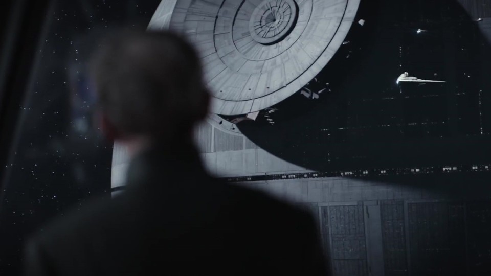 Ein neuer kurzer Spot zum Star-Wars-Ableger Rogue One zeigt in neuen Szenen nicht nur Darth Vader, auch ein weiterer wohlbekannter Schurke kündigt seine Rückkehr an: Grand Moff Tarkin . <br /> <br /> In den ersten Sekunden des Clips ist der bekannte Kommandeur des berüchtigten Todesstern als Silhouette von hinten zu sehen. In der Original-Trilogie von George Lucas wurde er im ersten Film Krieg der Sterne (Episode IV) von Peter Cushing dargestellt und kam bei der Zerstörung des Todesstern durch Luke Skywalker ums Leben. Dafür zeigt Rogue One , wie alles begann: Eine Rebellen-Einheit versucht die Pläne für den im Bau befindlichen Todesstern zu stehlen, eine neue Superwaffe des Imperiums. <br /> <br /> Mit Felicity Jones (Jyn Erso), Diego Luna (Captain Cassian Andor), Donnie Yen (Chirrut Imwe), Jiang Wen (Baze Malbus), Alan Tudyk (Droide K-2SO), Riz Ahmed (Bodhi Rook), Forest Whitaker (Saw Gerrera), Ben Mendelsohn (Director Orson Krennic) und natürlich Darth Vader. <br /> <br /> Deutscher Kinostart ist am 15. Dezember 2016.