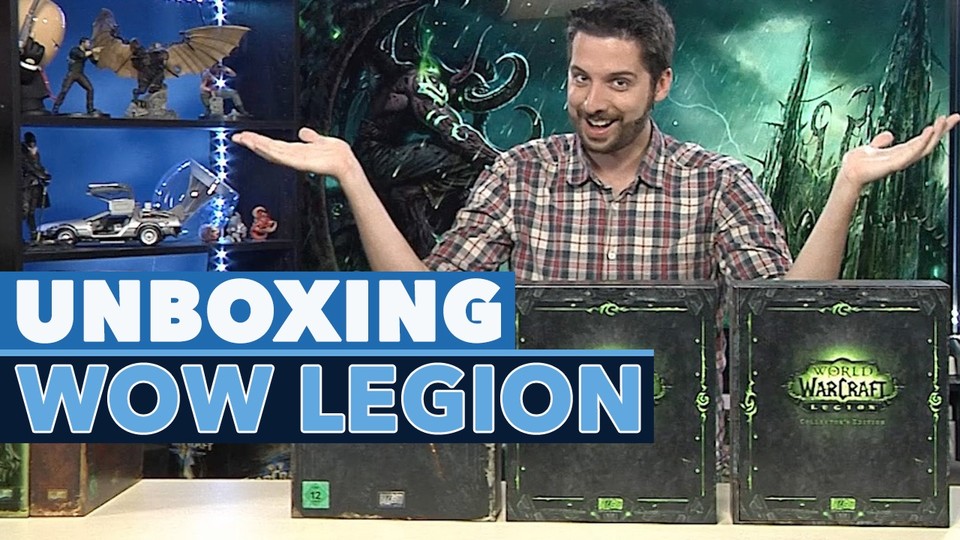 World of Warcraft: Legion erscheint wie üblich neben der Standard- und der Digitalen-Deluxe-Edition auch als Collector's Edition. Im Unboxing-Video packt GameStar-Redakteur Michael Obermeier die Sammelbox (Preis: 79,99 Euro) aus und zeigt, welche Inhalte sich darin befinden. <br /> Wie schon bei den CEs zu Warlords of Draenor oder Cataclysm enthält die Legion-Box ein Artbook (176 Seiten Hardcover), ein Mousepad (mit Legion-Design), eine Making-Of-DVD & Blu-Ray sowie den Soundtrack auf CD. <br /> Zusätzlich bekommen alle Käufer digitale Boni, darunter einen Teufelspirscher der Illidari (Reittier) und Knurps (Haustier) für WoW, den Teufelspirscher für Hearthstone, zwei Portraits von Illidan und Gul'dan für StarCraft 2 sowie einen Satz Flügel und Helm für Diablo 3. Alle digitalen Inhalte sind übrigens auch in der deutlich günstigeren Digtitalen Collector's Edition für 59,99 Euro enthalten. <br /> <br /> Wichtig: Auch die CE enthält nicht die zum Spielen erforderliche Vollversion von World of Warcraft. Die muss separat gekauft werden.