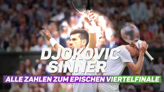 Djoker vs. Sinner: Zahlen zum epischen Viertelfinale<br />Novak Djokovic kämpfte sich nach einem 0:2-Satzrückstand zurück und besiegte Jannik Sinner im Wimbledon-Viertelfinale. Wir haben die besten Zahlen und Fakten zum epischen Match.
