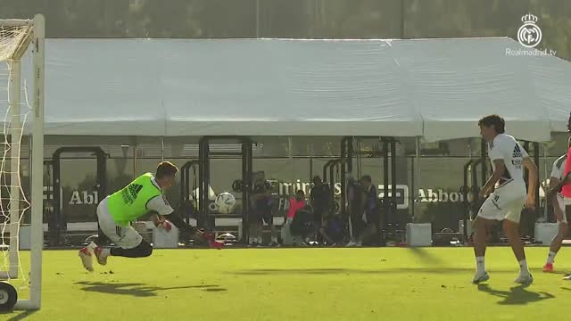 Champions-League-Sieger Real Madrid bereitet sich momentan in Los Angeles auf die kommende Saison vor. Im Training der Königlichen zeigt Final-Held Thibaut Courtois, was er so drauf hat.