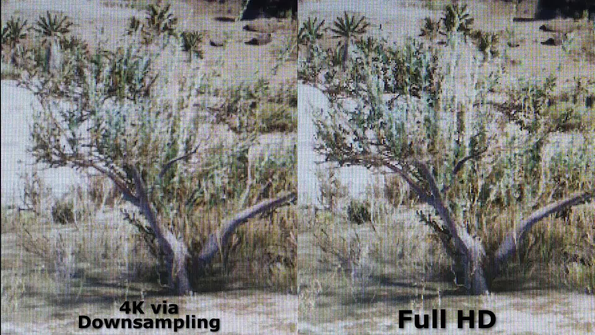 Dieses Video zeigt auf einem abgefilmten Full-HD-Monitor eine vergrößerte Szene aus Cyberpunk 2077. Links wird das Spiel per Downsampling intern in 4K berechnet und anschließend wieder auf die Full-HD-Auflösung herunterskaliert, rechts kommt die native Full-HD-Auflösung ohne Downsampling zum Einsatz. Während das Bild mit Downsampling dank hoher interner Auflösung von 3840x2160 weitgehend ruhig wirkt, kommt es bei der deutlich niedrigeren Full-HD-Auflösung von 1920x1080 zu einem sichtbaren Flimmern. <br /> <br /> Mehr zu dem Thema erfahrt ihr auch in einem passenden Artikel, der zeitnah auf GameStar.de live geschaltet und dann auch in dieser Videobeschreibung verlinkt wird.