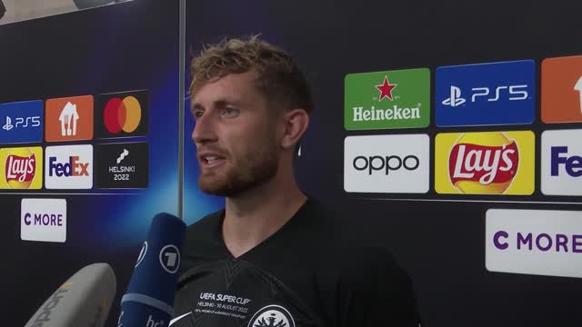 Eintracht Frankfurt verliert den UEFA Super Cup gegen Real Madrid mit 0:2. Christopher Lenz erklärt nach dem Spiel, dass man die wenigen Chancen, die hatte besser nutzen hätte müssen.