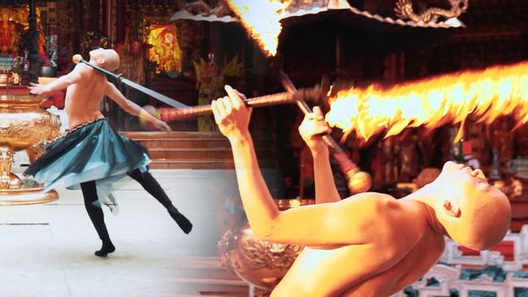 Dieser Schwertkünstler kombiniert Kampfkunst und Feuertrick zu einer erstaunlichen Darbietung