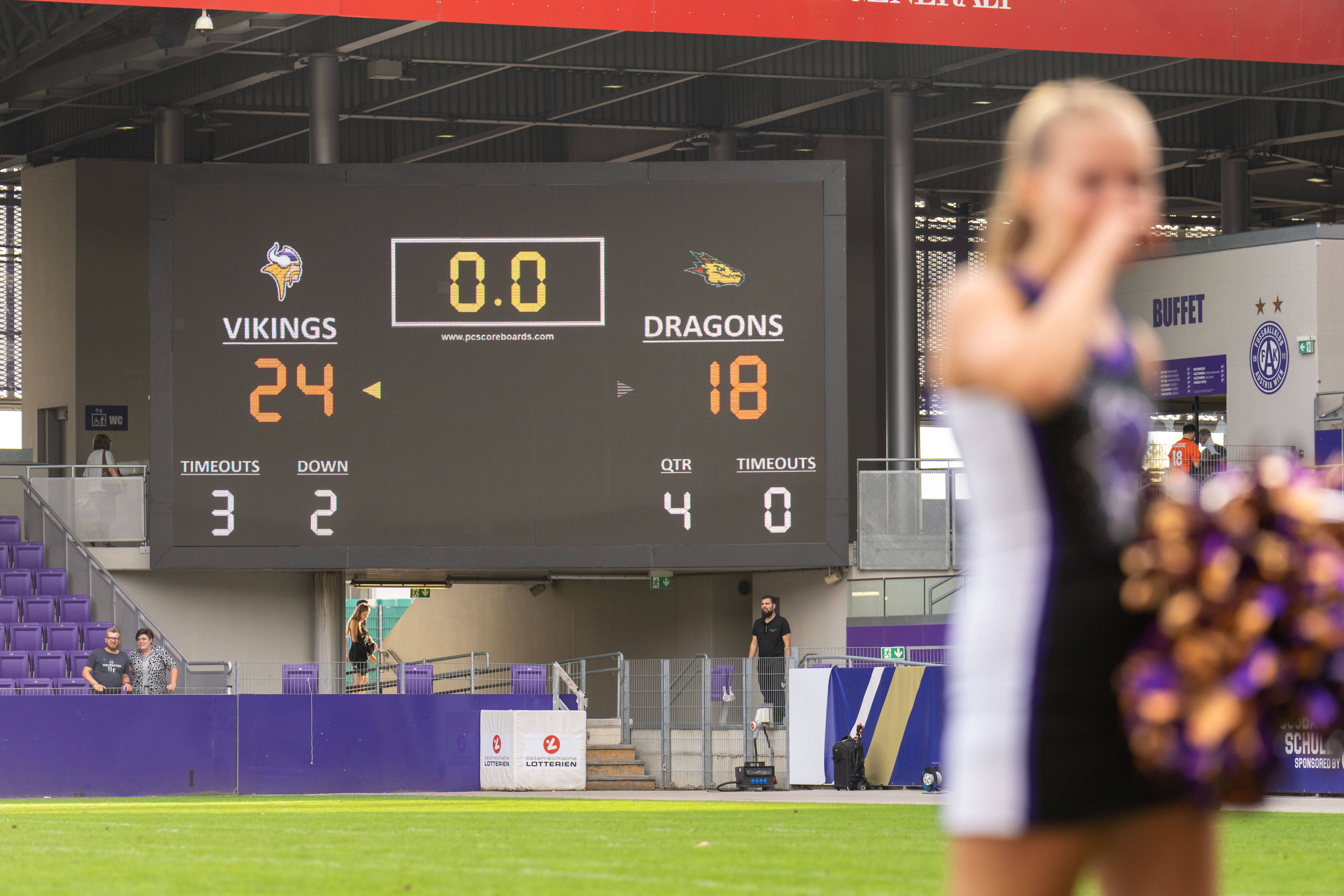 Die Vienna Vikings haben am letzten ELF-Spieltag die Barcelona Dragons knapp mit 24:18 geschlagen.