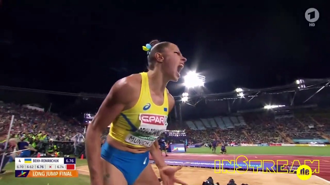 18.08.2022: ARD: Sportschau <br />Was war das denn?? Die Sportschau übertrug die Abendsession der European Championships der Leichtathletik aus München. In der Disziplin Weitsprung der Frauen verpasst die offensichtlich hoch ehrgeizige ukrainische Springerin Maryna Bech-Romantschuk durch einen letzten ungültigen Sprung eine Medaille und stößt einen unglaublichen Urschrei aus. .. Kopf hoch. Ist doch nur eine sportliche Niederlage... Nächstes Mal vielleicht. Die Medaille fürs größte Drama hat sie aber jetzt.<br /><br />https://instream.de/clips