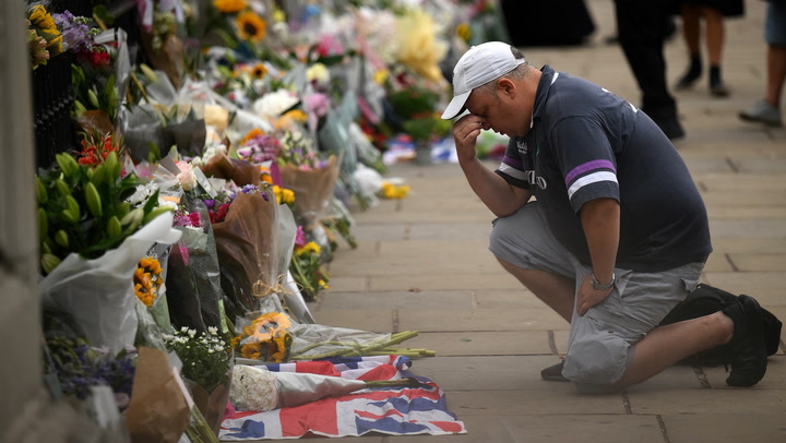 <p>Die Trauer sitzt einen Tag nach dem Tod der Queen noch tief. Vor dem Buckingham Palast erweisen viele Menschen der Monarchin die letzte Ehre.</p>