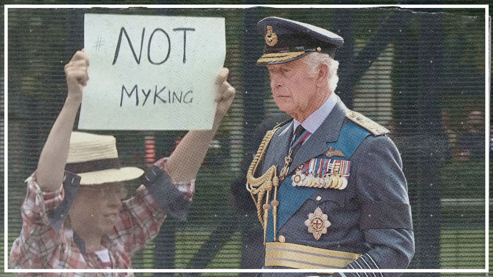 Protestierende stehen vor dem Parlament in London mit "Not my King"-Schildern und treten für die Abschaffung der Monarchie ein. <br />Der Link zum Artikel: https://www.derstandard.at/story/2000139080191<br /><br />Foto Thumbnail: AFP