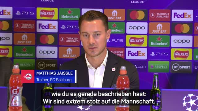 Salzburg gelingt nach dem Remis zum Auftakt gegen Milan auch gegen Chelsea ein 1:1 in der Champions League. Matthias Jaissle zeigt sich nach der Partie einmal mehr sehr zufrieden mit seinem Team.