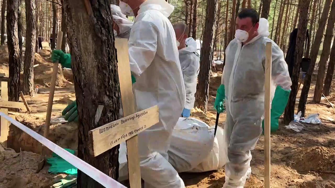 Nach der Entdeckung hunderter Gräber und mehrerer "Folterräume" in der zurückeroberten Region Charkiw im Osten der Ukraine sind ukrainische Streitkräfte womöglich auf weitere Gräber gestoßen. Behörden und Soldaten sprachen von bis zu Hundert Leichen in dem Ort Kosatscha Lopan nahe der russischen Grenze, ohne jedoch nähere Angaben zu machen.