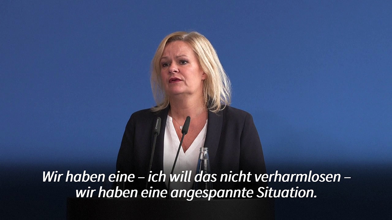 Bundesinnenministerin Nancy Faeser (SPD) hat die Solidarität der Deutschen mit ukrainischen Kriegsflüchtlingen gelobt. Dennoch sei dieser "humanitäre Kraftakt ist immer schwieriger zu bewältigen, je länger dieser furchtbare Krieg anhält", sagte Faeser.