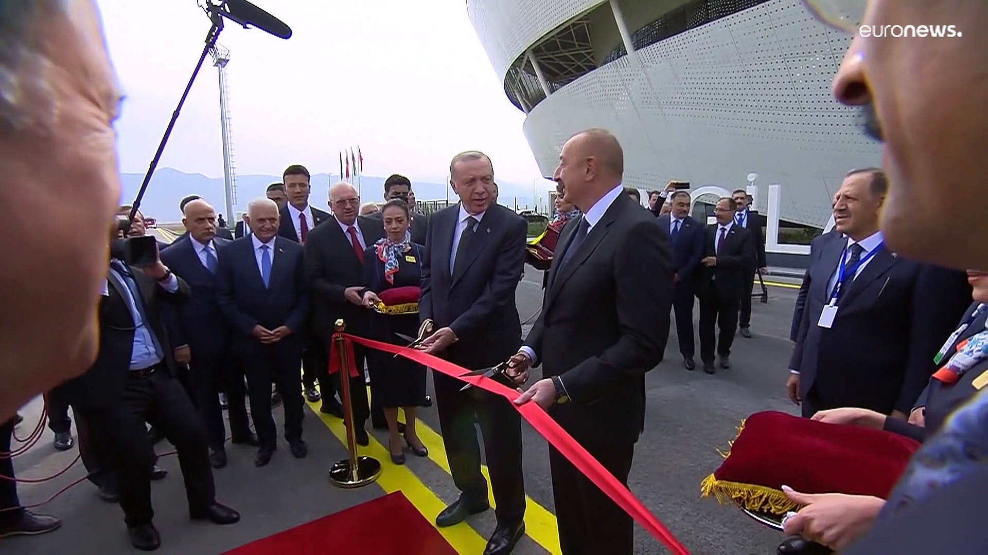 Der aserbaidschanische Präsident Aliyev und sein türkischer Kollege Erdogan haben in Zangilan einen neuen Flughafen eingewiehen. Die Gegend ist geprägt von Unruhen.