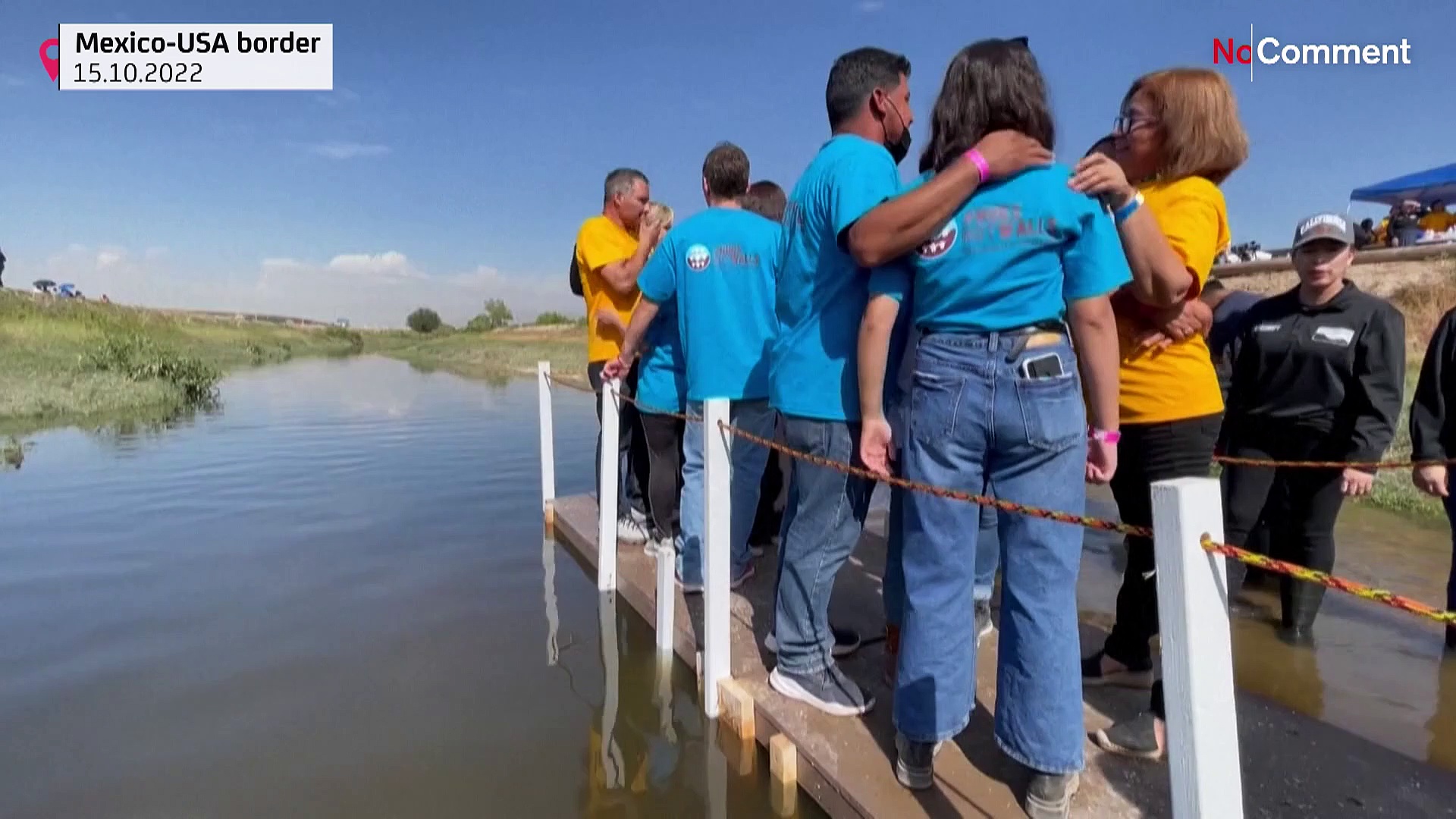 Familien, die sich jahrelang nicht gesehen haben, liegen sich in den Armen bei der Aktion "Hugs not walls".